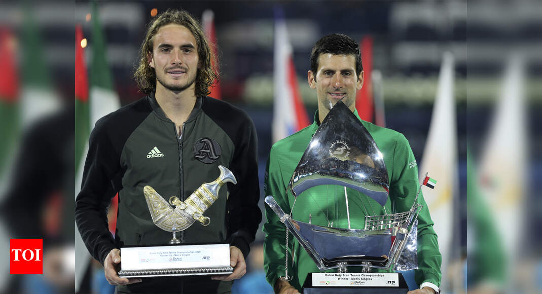 Roger federer, stefanos tsitsipas accept 2019 dubai trophies.